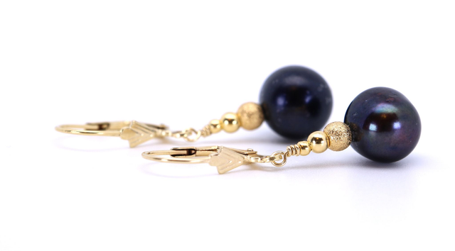 Edle Perlenserie in tiefem Schwarzglanz – 925 Silber vergoldet