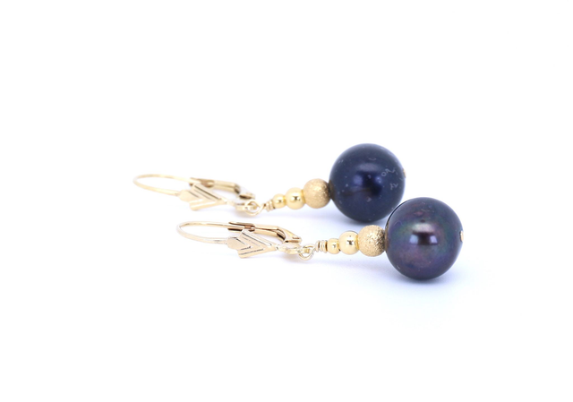 Diese luxuriöse Perlenserie (Kette, Armband, Ohrring) vereint klassische Eleganz mit modernem Charme. Die eindrucksvoll schimmernden, dunkel schattierten Süßwasserzuchtperlen beeindrucken durch ihren geheimnisvollen Lüster und ihre natürliche, organische Form. Jedes Schmuckstück ist mit sorgfältig vergoldetem 925 Silber veredelt und bis ins Detail harmonisch abgestimmt.