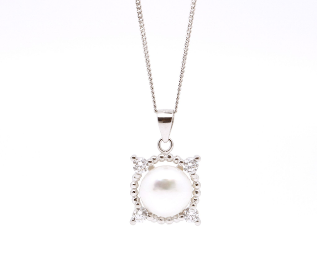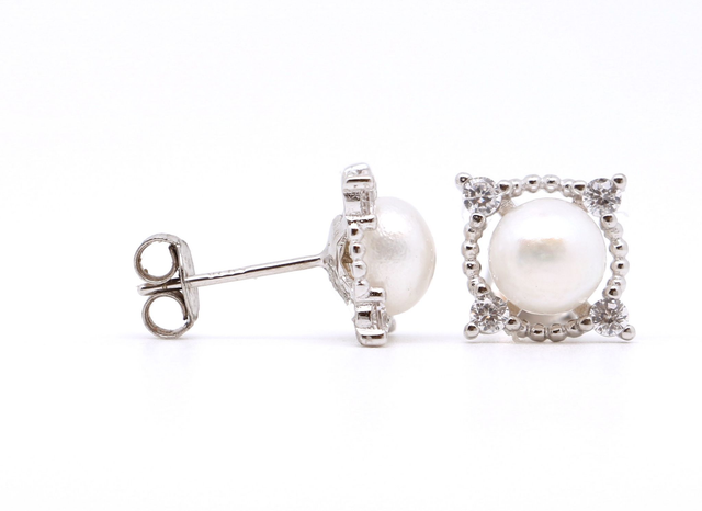 Passend dazu ergänzen elegante Ohrstecker aus rhodiniertem Silber 925 das Set. Sie präsentieren eine 8 mm große Süßwasserperle (Bouton), umrahmt von vier glanzvollen Zirkonia à 2 mm, die jedem Look eine harmonische Brillanz schenken.