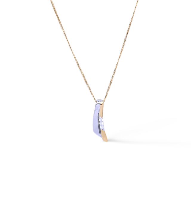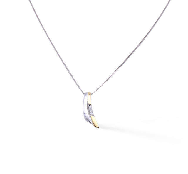 Der fein gearbeitete Anhänger misst inklusive Schlaufe ca. 20 mm in der Länge und ca. 8 mm in der Breite. Seine leicht gewölbte Form, die polierte Oberfläche und die gefassten weißen Zirkonia verleihen ihm eine edle Ausstrahlung. Getragen wird er an einer eleganten, 45 cm langen Kette mit zusätzlichem Ring bei 42 cm zur Längenanpassung.