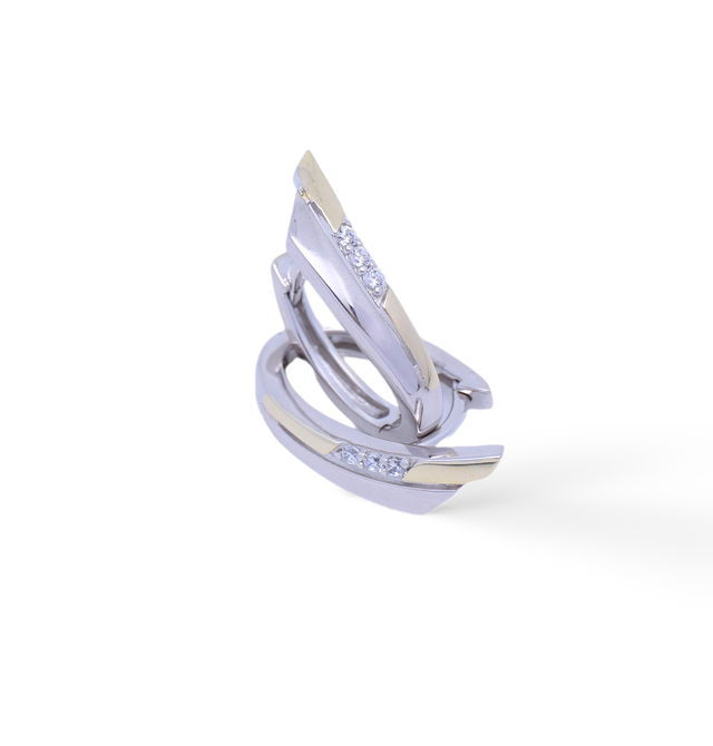 Das Set wird durch ein Paar stilvoller Scharniercreolen ergänzt – ebenfalls aus rhodiniertem Silber 925, seitlich vergoldet und mit funkelnden Zirkonia besetzt. Mit einer Länge von ca. 22 mm, einer Breite von ca. 6,8 mm und einem Außendurchmesser von ca. 16,5 mm sorgen sie für ein harmonisches Finish.
