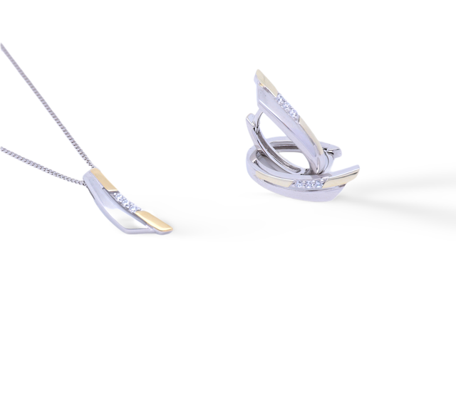 Verleihen Sie Ihrem Look stilvolle Raffinesse mit diesem wunderschönen Schmuckset aus hochwertigem 925er Silber. Rhodiniert und seitlich gelb vergoldet, kombiniert es moderne Eleganz mit klassischem Design.