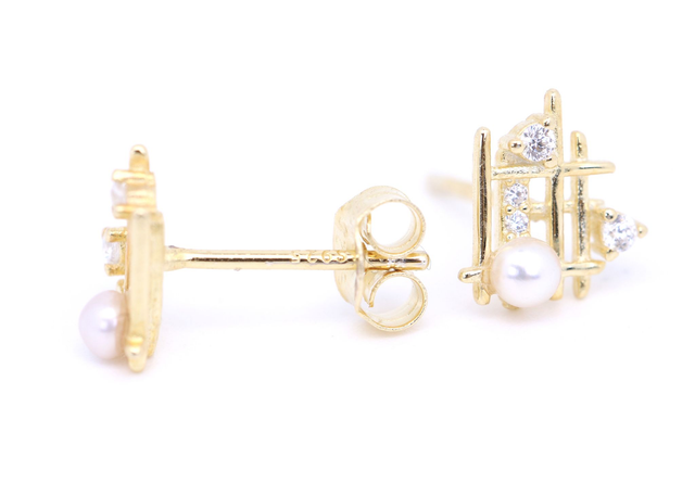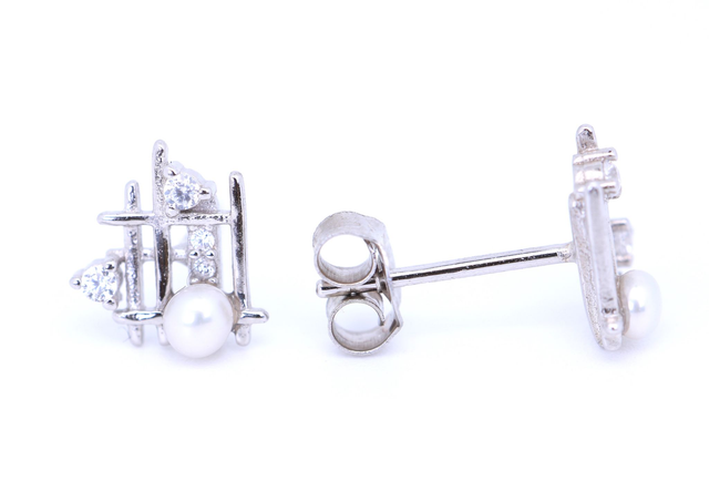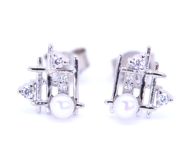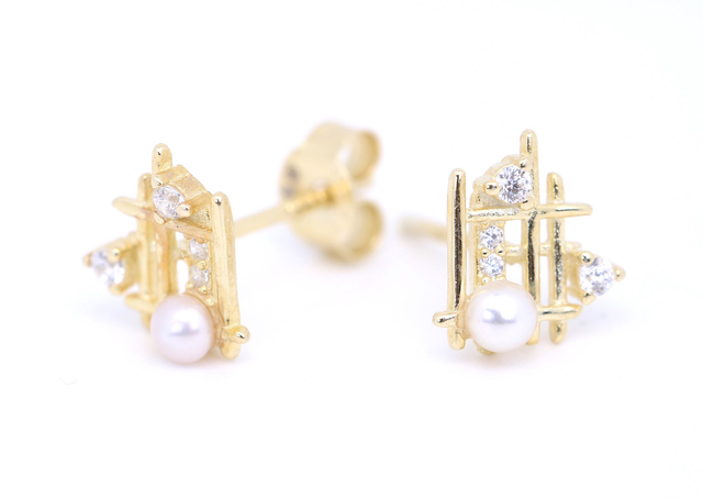 Entdecken Sie die exquisite Eleganz dieser 925er Silber Ohrstecker, die mit echtem Gold vergoldet, oder Silber 925 rhodiniert sind. Das abstrakte Fantasiemotiv verleiht jedem Outfit eine künstlerische Note und wird von einer zarten Sandkornperle (Ø ca. 2,7 mm) sowie funkelnden weißen Zirkonia-Steinen geschmückt, die dem Schmuckstück zusätzlichen Glanz verleihen. Der Ohrsteckerstift ist strategisch mittig angebracht, wodurch das Ohrloch dezent verdeckt wird. Mit einer Länge von ca. 8,6 mm und einer Breite von ca. 8,0 mm sind diese Ohrstecker nicht nur ein Blickfang, sondern auch ein zeitloses Accessoire für jeden Anlass.