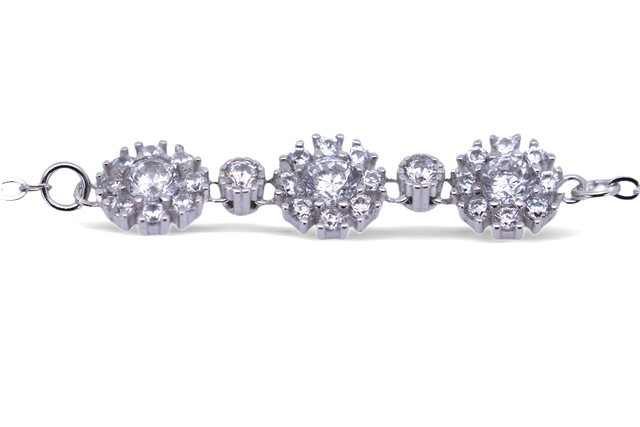 Fein rhodiniertes 925er Silber, eine filigrane Ankerkette von ca. 1,25 mm Breite, drei hochglanzpolierte Blumenkreise voll besetzt mit Zirkonia und zwei zusätzliche, ca. 2,5 mm große Steine – dieses Armband ist ein kleines Kunstwerk. Der Karabinerverschluss sitzt sicher, die Länge von ca. 17 cm plus 3 cm Verlängerung passt sich jedem Handgelenk an. Ideal für Alltag und festliche Momente, verleiht es jedem Styling eine romantische, funkelnde Note. Ein bezauberndes Geschenk für Frauen, die zarte Details und hochwertigen Glanz lieben, mit zeitloser Eleganz und feinen Akzenten.
