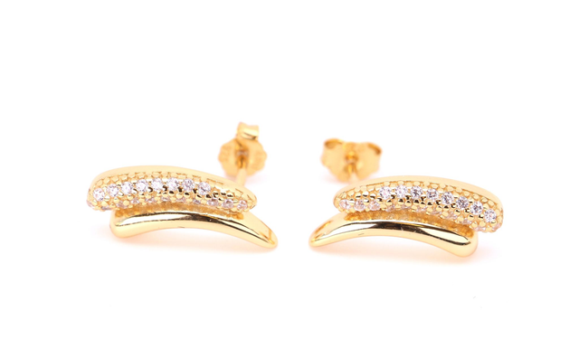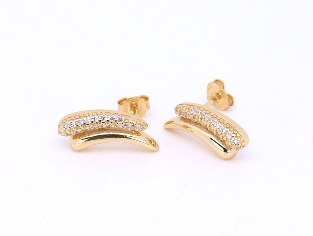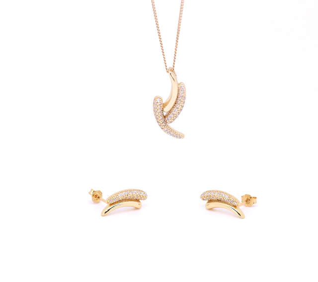 Die passenden Ohrstecker (ca. 16 x 7 mm) komplettieren das Set stilvoll. Ebenfalls vergoldet, fangen sie das Licht edel ein und setzen elegante Akzente.