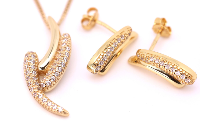 Erleben Sie stilvolle Eleganz mit unserem edlen Schmuckset, bestehend aus einem Anhänger und passenden Ohrsteckern, gefertigt aus echtem 925er Silber und hochwertig vergoldet. Dieses Set vereint zeitlose Schönheit mit einem Hauch von Luxus.