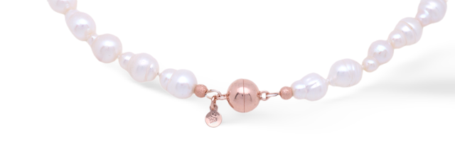 Die Kette misst 49 cm und legt sich geschmeidig und kunstvoll an den Hals. Vollendet wird das Schmuckstück durch einen 10 mm großen Magnetverschluss aus 925er Silber, edel rosévergoldet – ein eleganter Akzent, der Funktionalität mit feiner Raffinesse verbindet.