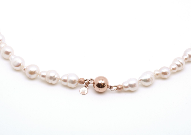 Die Kette misst 49 cm und legt sich geschmeidig und kunstvoll an den Hals. Vollendet wird das Schmuckstück durch einen 10 mm großen Magnetverschluss aus 925er Silber, edel rosévergoldet – ein eleganter Akzent, der Funktionalität mit feiner Raffinesse verbindet.