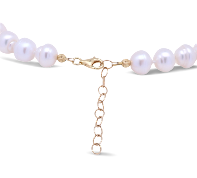Diese kurze Perlenkette ist ein Statement zeitloser Eleganz und moderner Sinnlichkeit. Weiße Süßwasserperlen mit traumhaftem Lüster schmiegen sich harmonisch an den Hals und setzen das Dekolleté stilvoll in Szene. Mit 37 cm Länge und einer 5 cm Verlängerung trägt sich die handgeknüpfte Kette perfekt als Choker oder flexibel etwas länger. Die etwa 1 cm großen Perlen wirken luxuriös, ohne aufdringlich zu sein. Vergoldetes 925 Silber am Verschluss und an der Verlängerung unterstreicht die hochwertige Verarbeitung. Diese kurze Perlenkette verleiht jedem Outfit eine feminine, exklusive Note und bleibt dennoch angenehm leicht. Ideal für besondere Anlässe, elegante Alltagslooks und als luxuriöses Geschenk mit bleibendem Wert für stilbewusste Frauen weltweit.