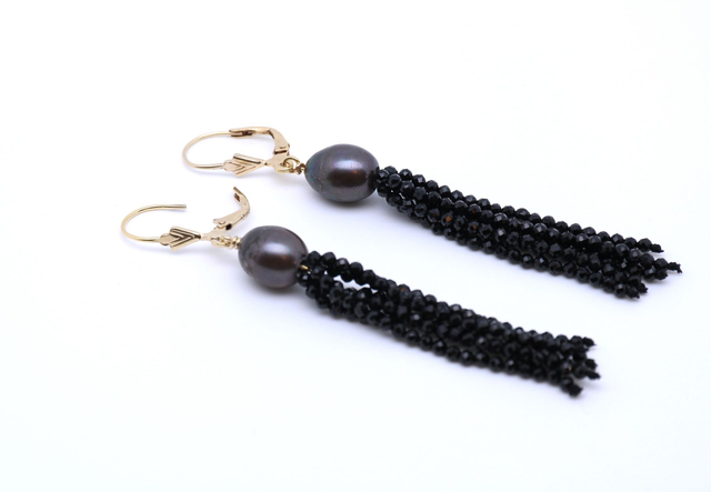 Ohrhänger mit Süßwasserperle und funkelnden Spinell-Strängen