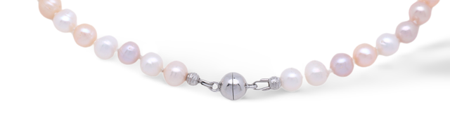 Diese elegante Perlenkette vereint zeitlose Schönheit mit moderner Raffinesse. Süßwasserperlen schimmern in harmonischen Nuancen von Weiß bis zartem Lila und werden nach vorne hin sanft größer, wodurch ein schmeichelnder Verlauf entsteht.
