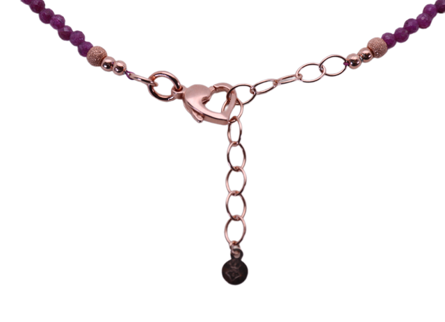 Rubincollier mit Perlen & Herzkarabiner - Gisela