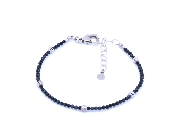 Dieses exquisite Armband besticht durch zeitlose Eleganz und feine Handwerkskunst. Facettierte Saphirsteine (2 mm) verleihen dem Design eine exklusive Ausstrahlung, während diamantierte Silberkugeln (rhodiniertes 925er Silber) alle 3 cm raffinierte Akzente setzen.