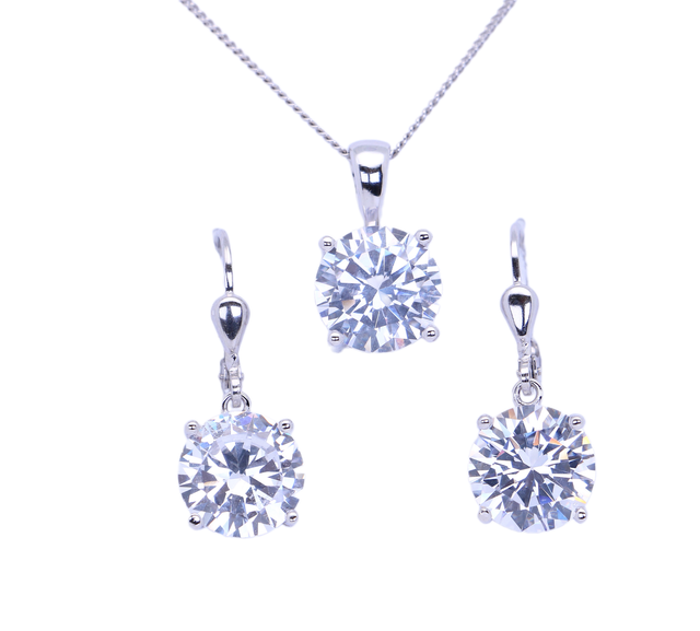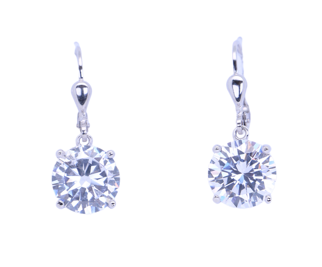 Hergestellt aus 925 rhodiniertem Silber mit hochglanzpolierter Oberfläche. Der Zirkonia hat einen Durchmesser von 10 mm und wird durch vier Stifte gehalten.