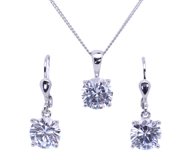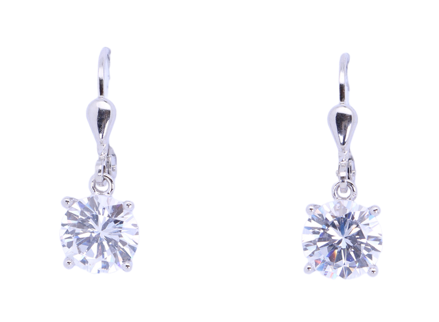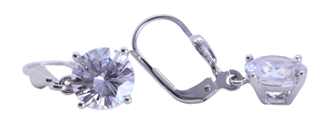 Hergestellt aus 925 rhodiniertem Silber mit hochglanzpolierter Oberfläche. Der Zirkonia hat einen Durchmesser von 8 mm und wird durch vier Stifte gehalten.