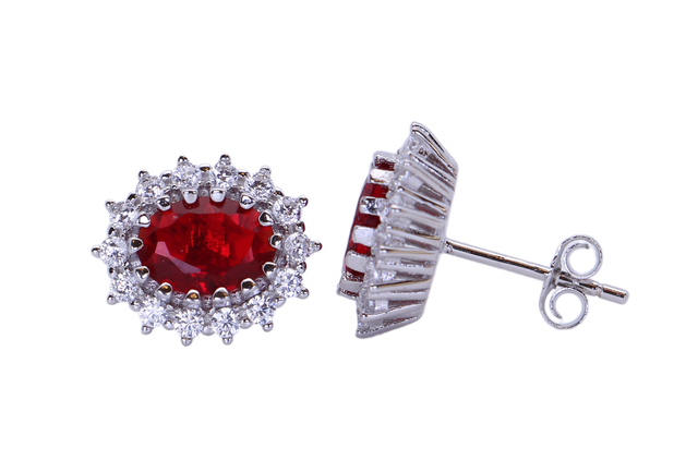 Strahlende Eleganz – Kamelie rot - Zirkonia-Schmuckset aus rhodiniertem 925er Silber