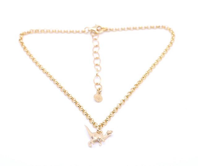 Diese stylische Fußkette aus vergoldetem 925er Silber ist das Must-have für alle, die ihren Look mit einem besonderen Akzent abrunden möchten. Mit einer Länge von 25,5 cm plus 5,5 cm Verlängerung sitzt sie angenehm am Fußgelenk und lässt sich individuell anpassen. Das Highlight ist ein niedlicher Dinosaurier-Anhänger (ca. 1,5 x 1 cm), der deiner Sommergarderobe eine trendige und zugleich verspielte Note verleiht. Perfekt für Strandtage, Festivals oder einfach, um deinem Outfit das gewisse Extra zu geben!