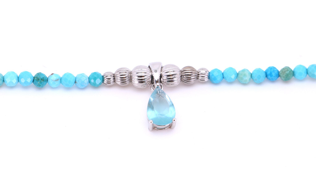 Türkis-Collier mit Kristalltropfen – handgefertigtes Unikat mit kunstvoller Raffinesse