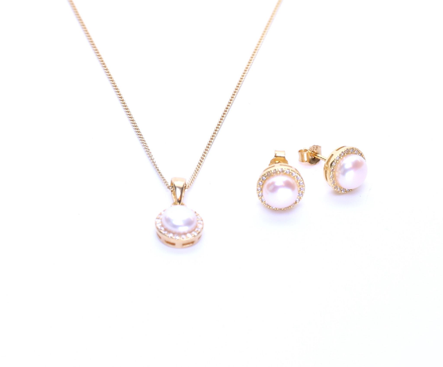 Passend dazu präsentieren sich die exquisiten Ohrstecker: Jede feine Süßwasserzuchtperle (Bouton) von ca. 5 mm wird von schimmernden Zirkonia in zarter Fassung umspielt. Die sorgfältige Verarbeitung und der polierte Glanz machen dieses Set zu einem stilvollen Begleiter für besondere Anlässe und den Alltag.