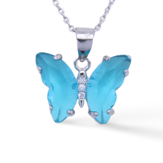 Ein echter Hingucker: Dieser sehr schöne Anhänger in Schmetterlingsform bringt Farbe und Glanz in deinen Look! Gefertigt aus hochwertigem Silber 925/- rhodiniert, glänzt er besonders edel und ist perfekt für jeden Tag. Die zarten aquafarbenen Schmucksteine in den Flügeln funkeln wunderschön. Die Kette ist 45 cm lang und hat bei 42 cm einen praktischen Zwischenring – ideal zum Variieren. Der Anhänger ist komplett poliert und misst ca. 15,2 mm in der Länge inkl. Schlaufe und ca. 15,5 mm in der Breite. Ein liebevolles Geschenk oder dein neues Lieblingsstück!